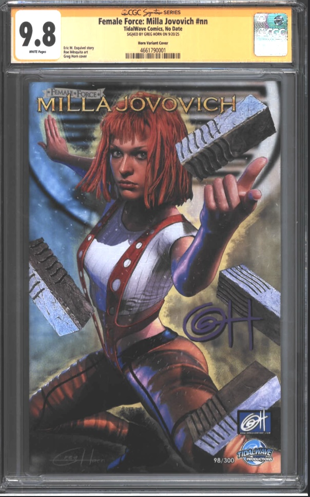 Female Force: Milla Jovovich #nn TidalWave Comics, Greg Horn Variant Cover & Greg Horn Virgin Variant.