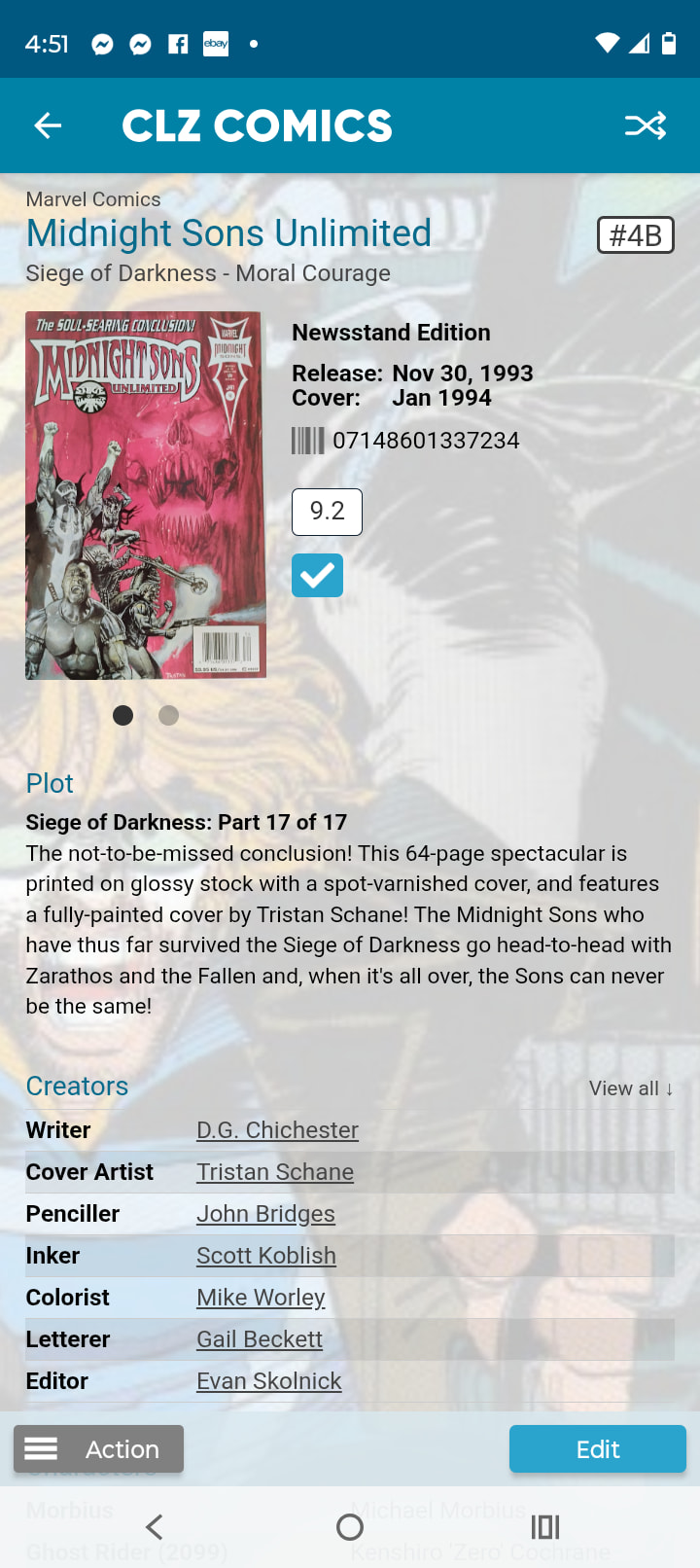 And Midnight Sons Unlimited #4, variant designation of ‘B’ and it’s bar code: