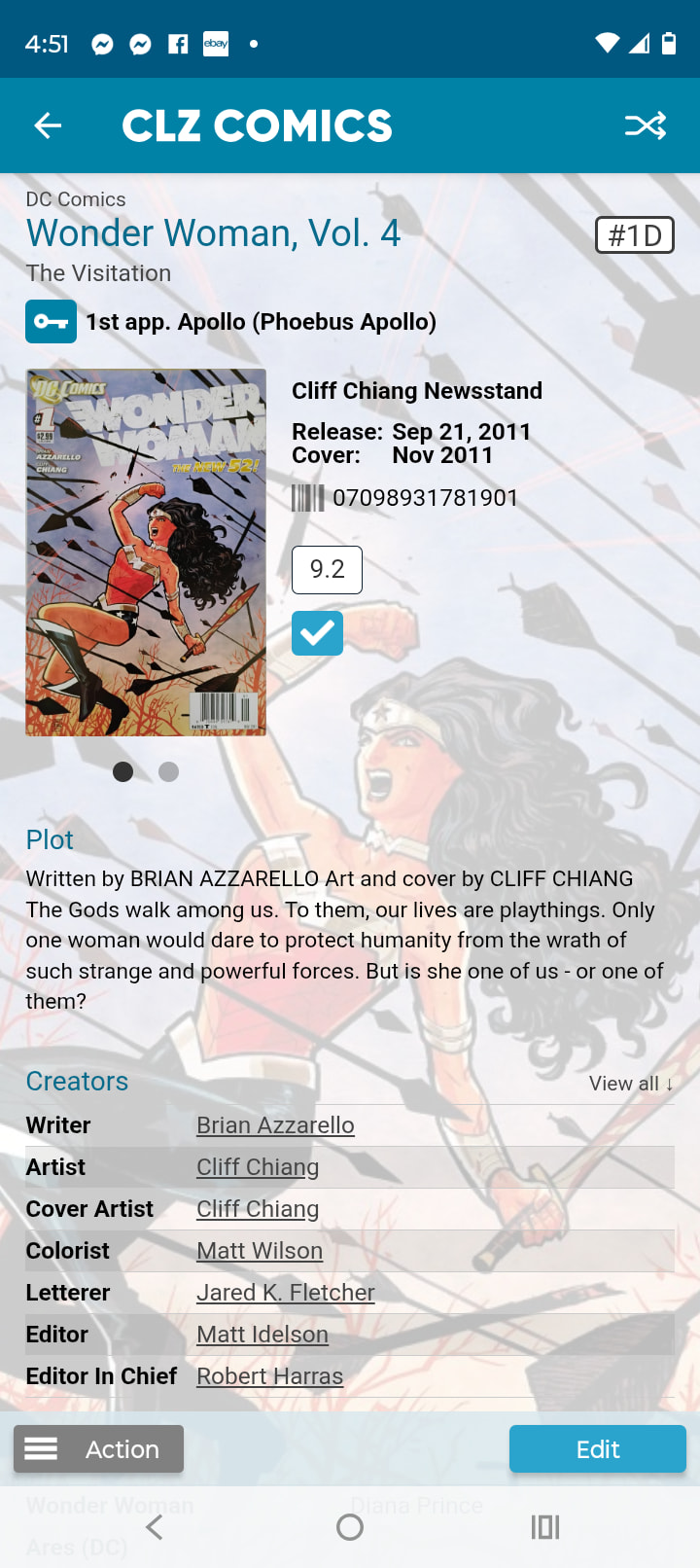 Wonder Woman (vol 4) #1, variant is ‘D’ because of a variant and 2nd print: