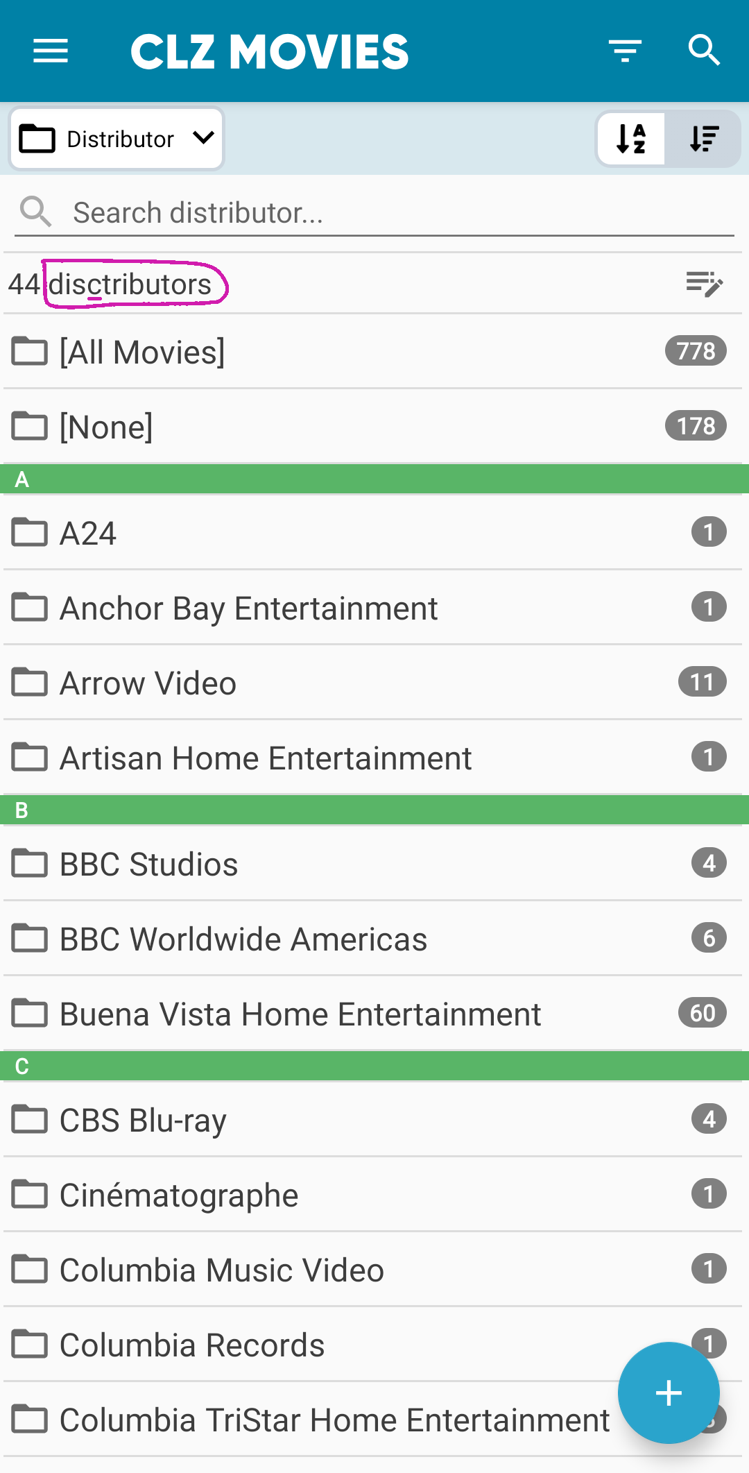 Hi there, just notifying the CLZ team of a couple of spelling errors — or rather, two instances of the same error — in the CLZ Movies mobile app. I was viewing my library by distributor, and I noticed that in a couple of places, that word is misspelled “disctributors.” (I’m on Android, by the way.)