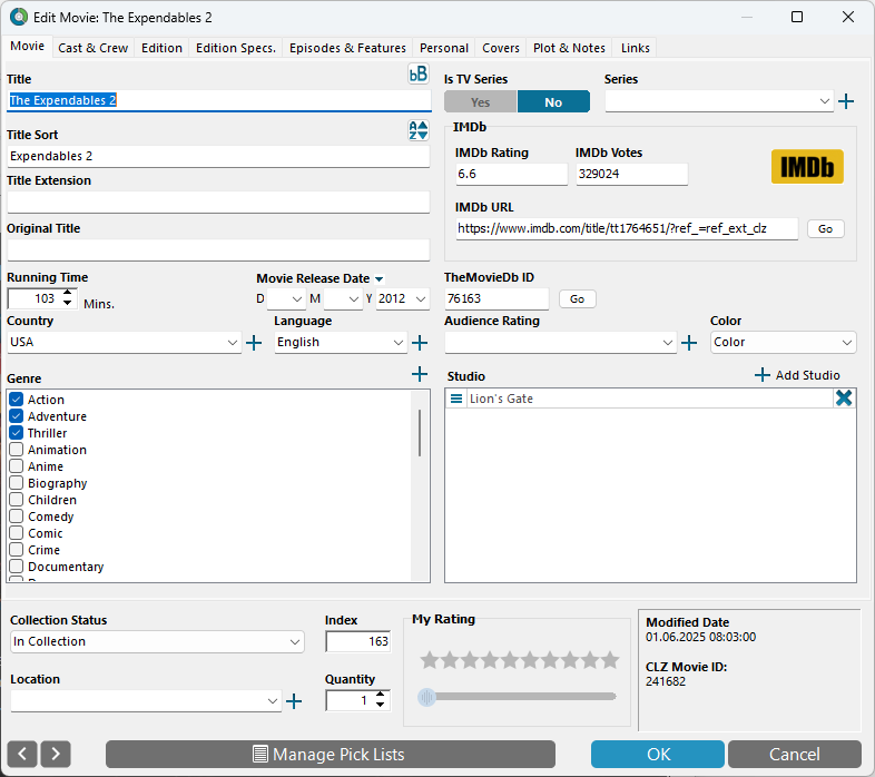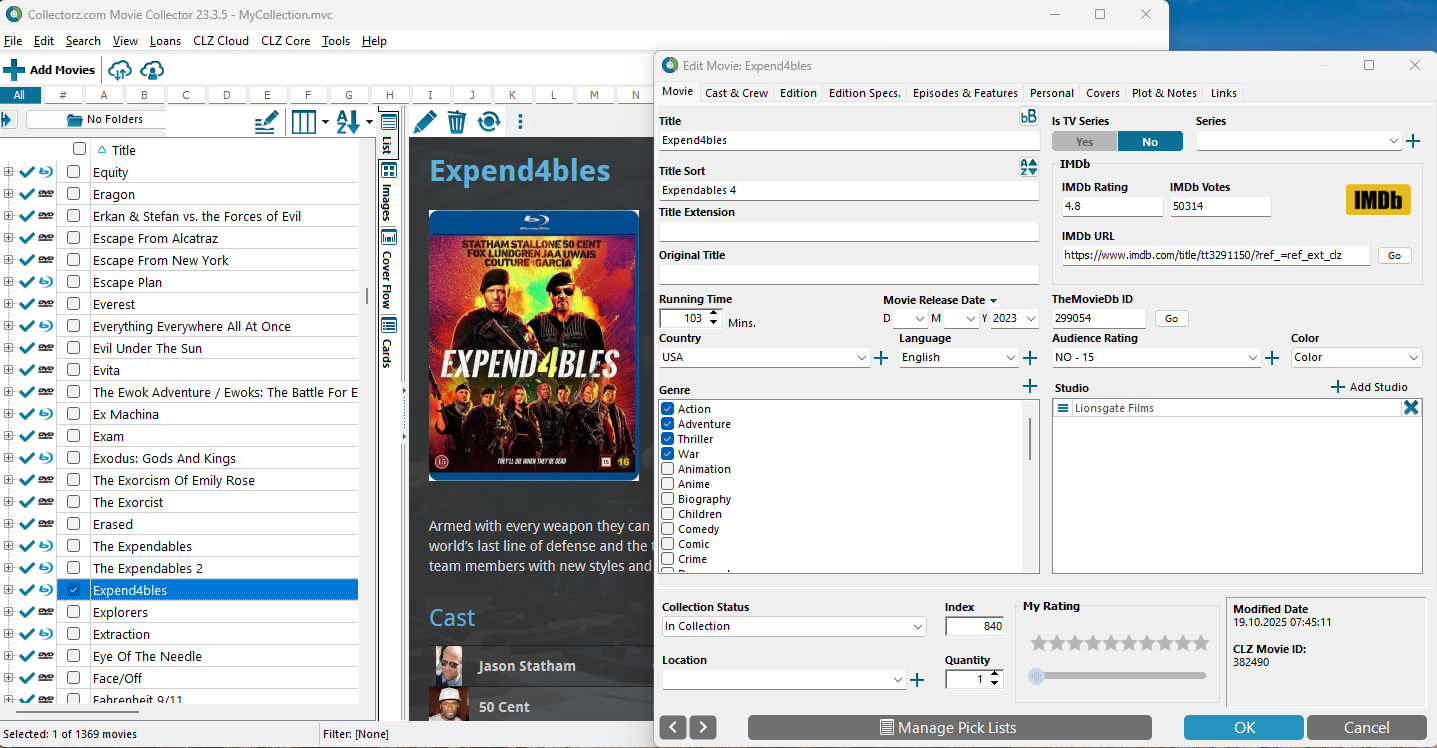 The Expendables 4 5055761916287 and The Mercenary 5060255690222 listed under T in error.