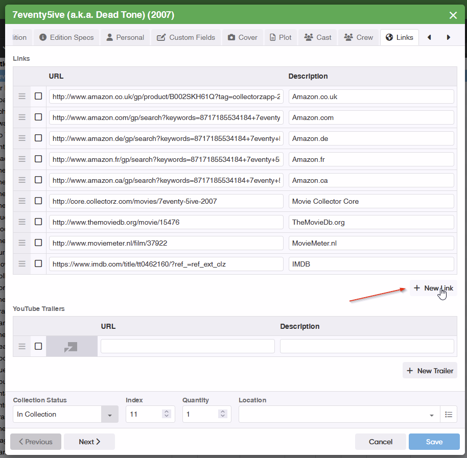 First I can not find any option when adding movies to include links for the movie/show automatically like the desktop. It must have the option some were as ones I already did with links have links on the web that show up.