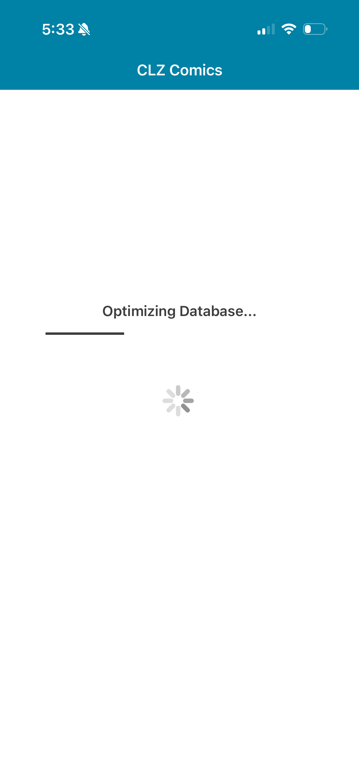 CLZ Comics v10.8.2 was approved and released. It contains a fix for the problem where the “Optimization database” process wasn’t finishing/takes a long time. The new version that was just released has a much faster conversion process and should get you through it.