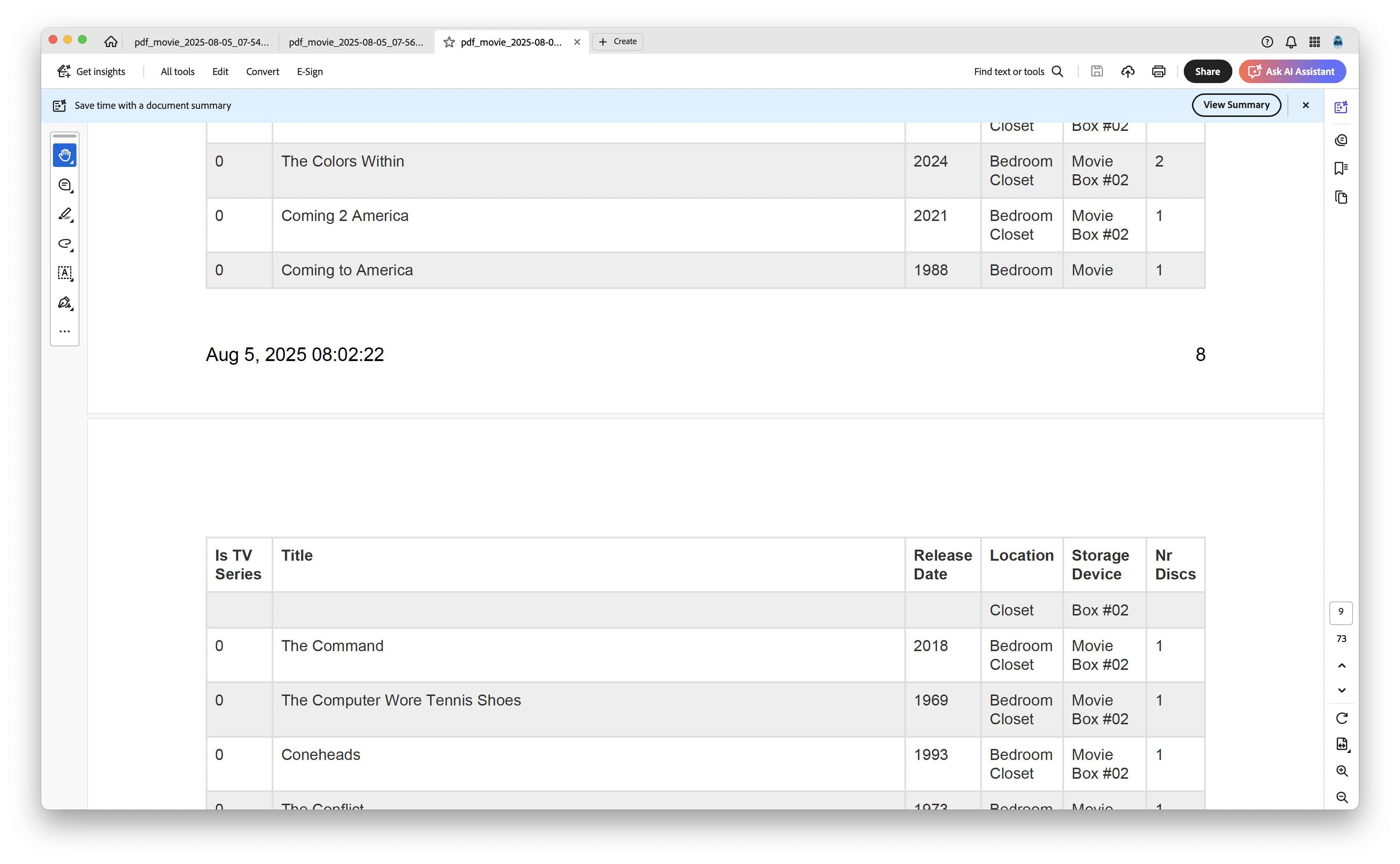 The first row should be with the “Coming to America” Location should be “Bedroom Closet” not “Bedroom”. Storage Device should be “Movie Box #02” not “Movie”.