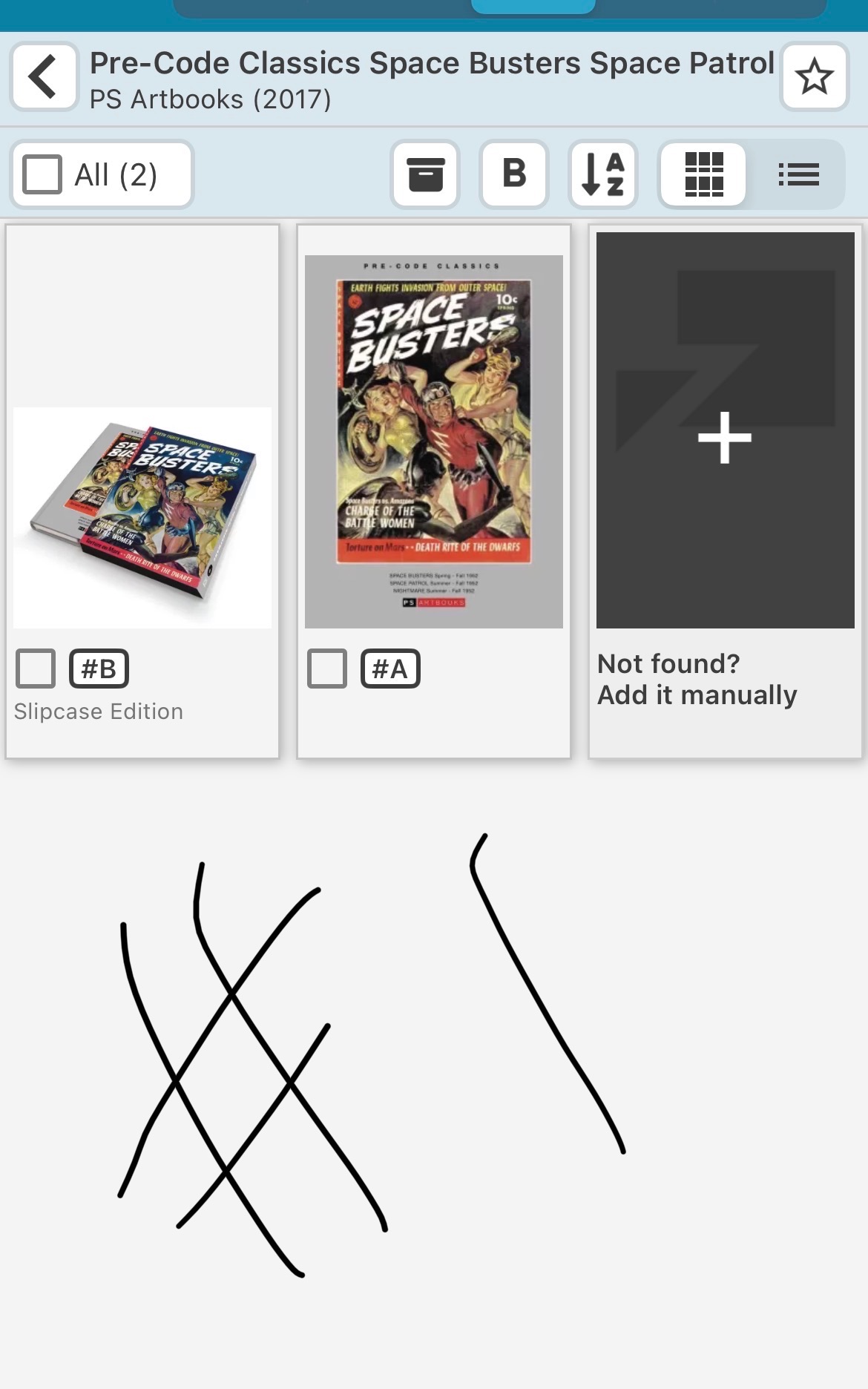 - note that the existing title shows both the hardcover and slipcase version of #1 as “A” and “B”. Some other PS Artboook titles have these together under a single title, some also include the TPs while others have as many as 3 separate titles. Might be a good rainy day project to standardize these.