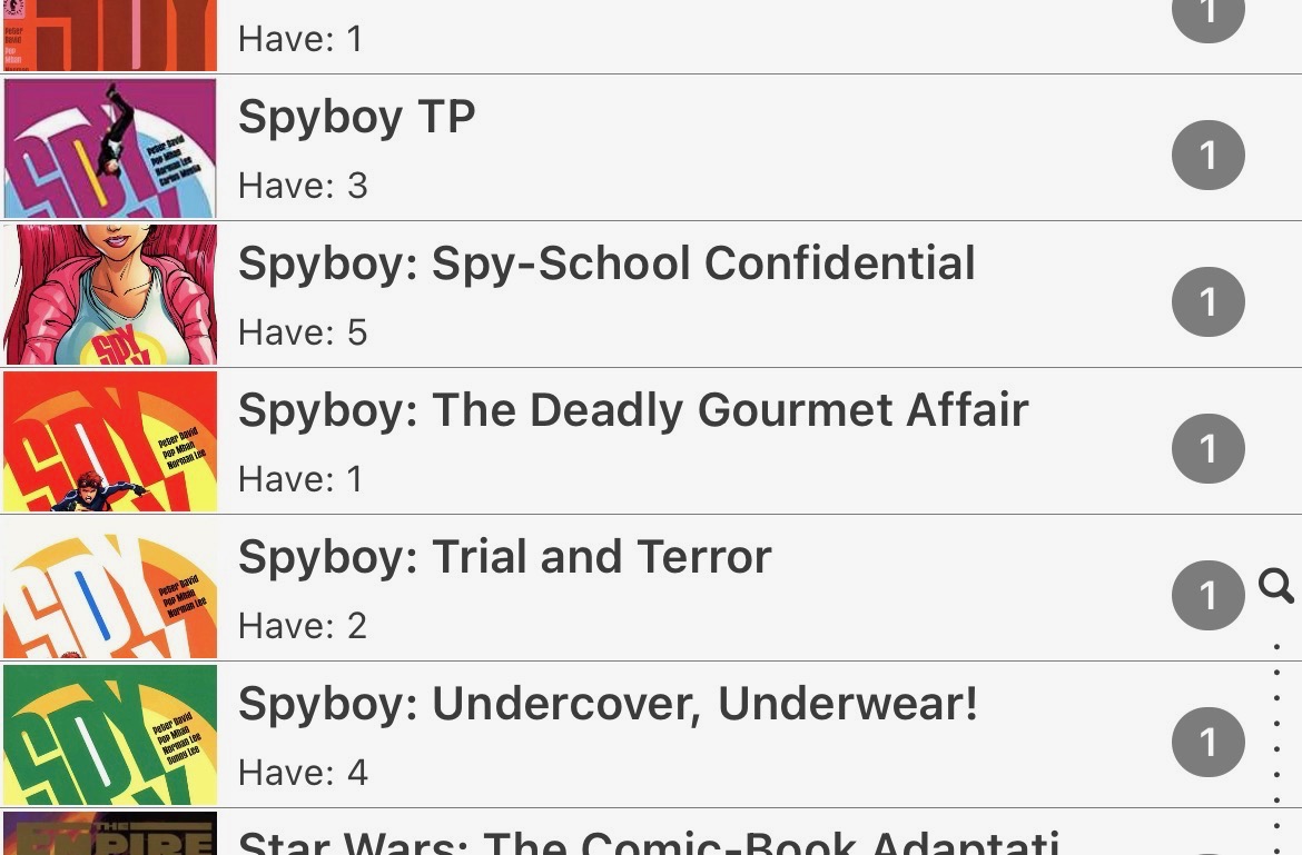 There are 6 TPs for the collected Spyboy series and all are in core. However, 5 of the 6 are shown with their subtitle along with the numbering of the series. Book 3 is listed in core under “Spyboy TP” which also includes one of the other volumes listed elsewhere.