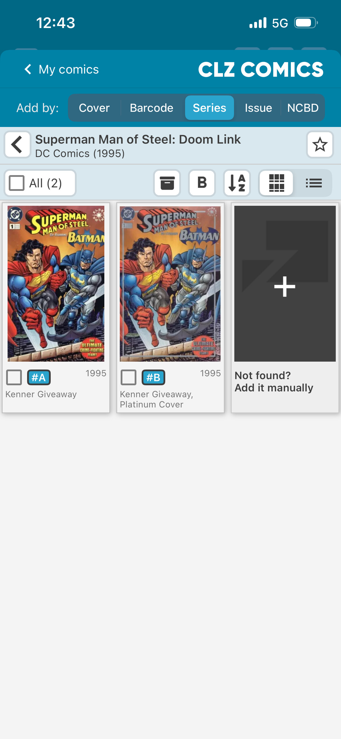 Looks like the 1A, 1B and 1D under “Superman: The Man of Steel - Kenner Limited Edition Comic Books” are all labeled the same. “Superman/Doomsday figure 2-pack; 16 pages”