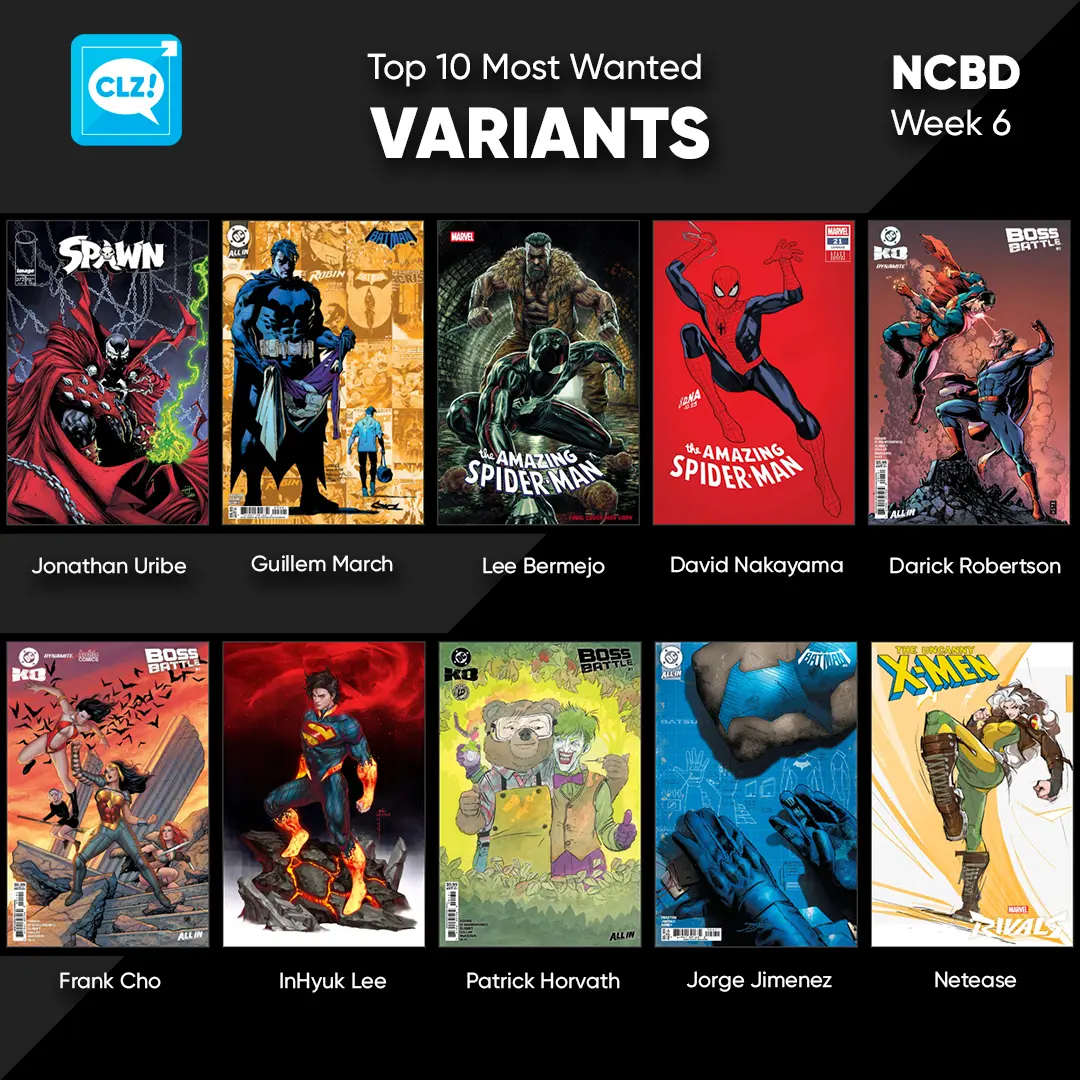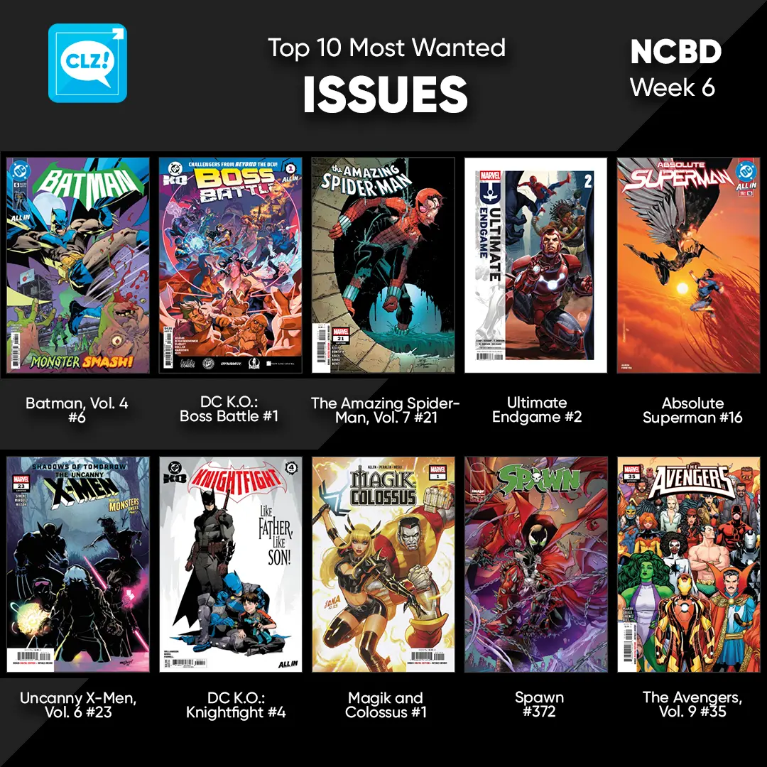 These top-10s are created by you all, the users of the CLZ app and software, as they’re based on how often these comics already appear on your wish lists in the CLZ Cloud, even before release!
