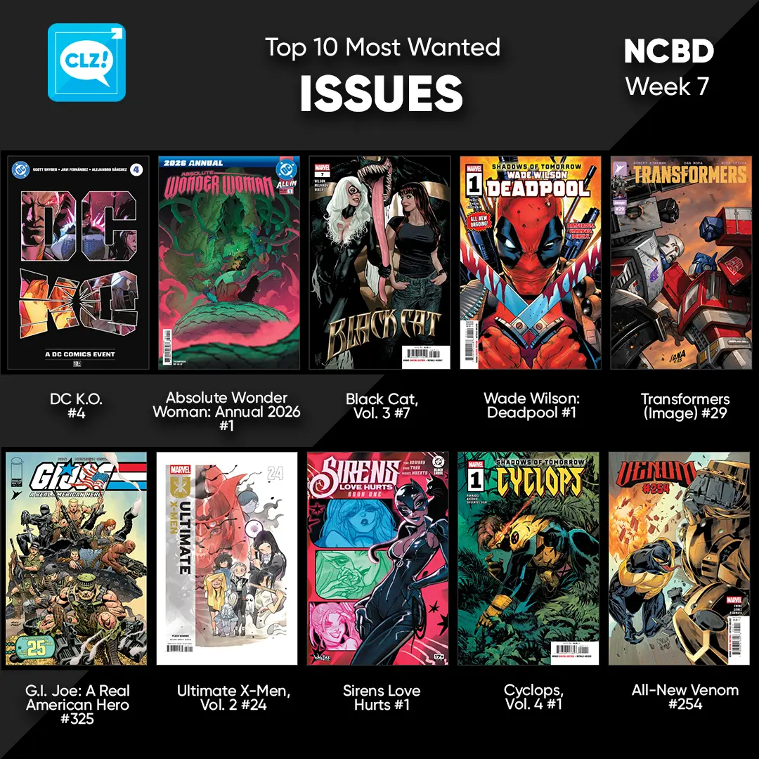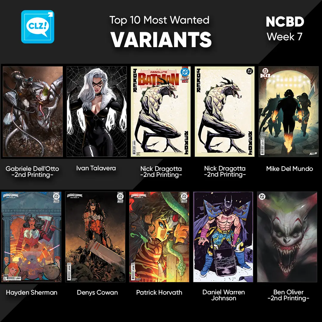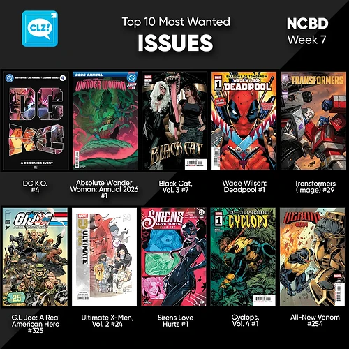 These top-10s are created by you all, the users of the CLZ app and software, as they’re based on how often these comics already appear on your wish lists in the CLZ Cloud, even before release!