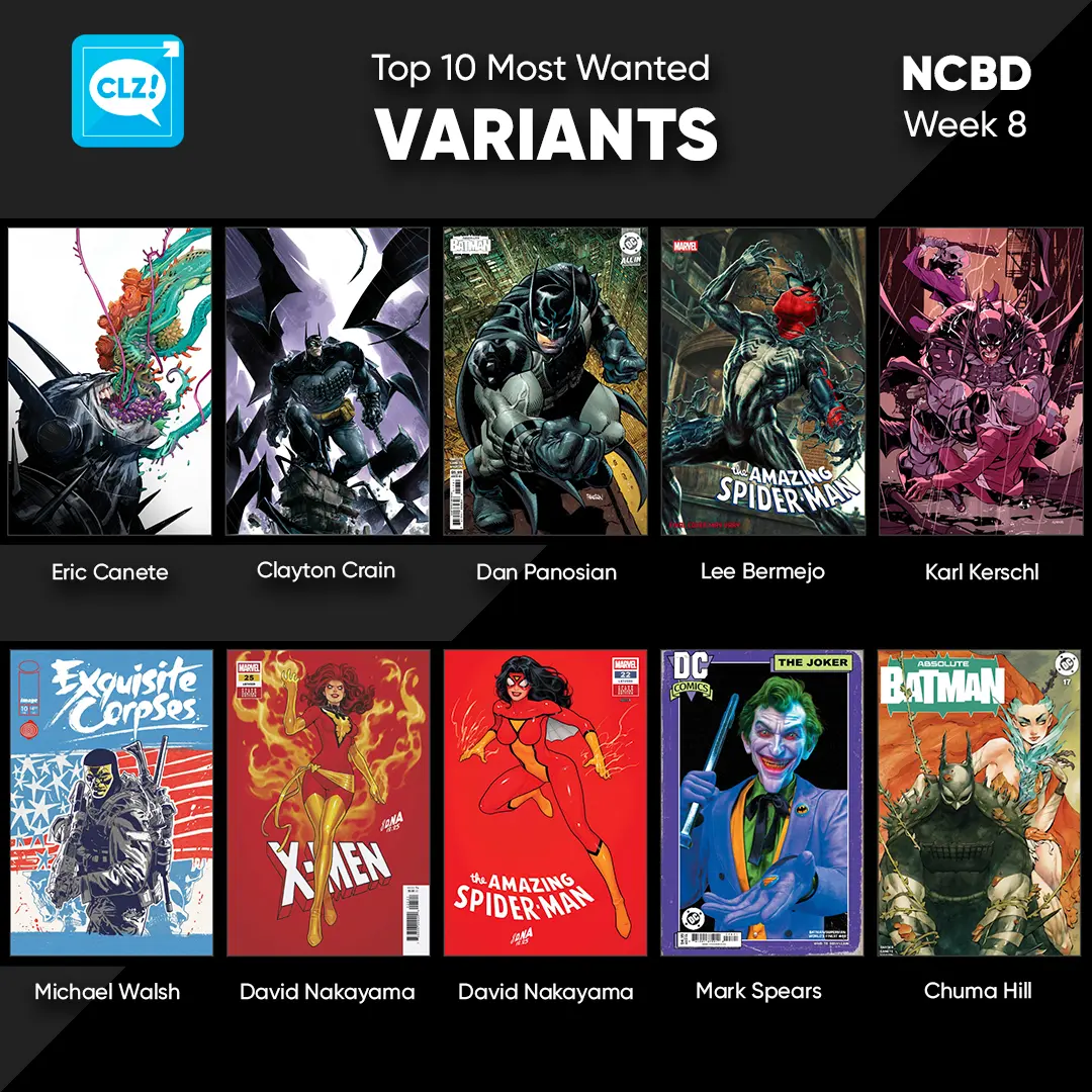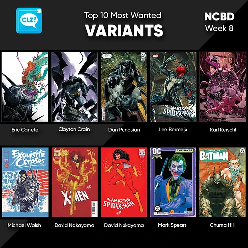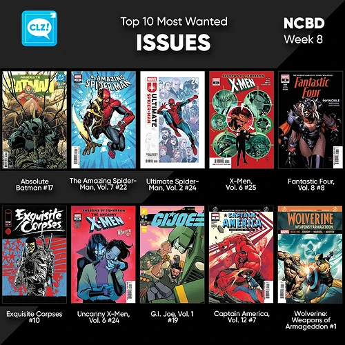 These top-10s are created by you all, the users of the CLZ app and software, as they’re based on how often these comics already appear on your wish lists in the CLZ Cloud, even before release!
